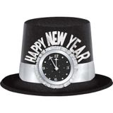 Glitter Clock Happy New Year Top Hat, Black/Silver Party City